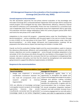 GPE management response to the evaluation of the Knowledge and Innovation Exchange (KIX) program as of 24 July, 2025.