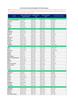 List of countries and territories eligible for GPE financial support, detailing which type of grant each country is eligible for and the maximum allocation per type.
