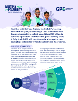 The Case for Investment details how a fully funded GPE, with a US$5 billion replenishment and an additional $10 billion in cofinancing from development banks, the private sector and philanthropic partners, can improve education for almost 750 million children around the world.