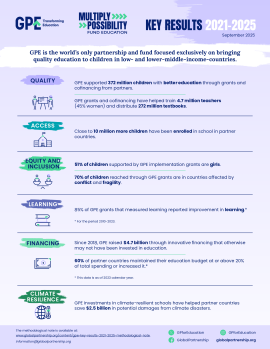 Over the 5 years of the GPE 2025 strategic plan, GPE has achieved impressive results in access, equity and inclusion, quality teaching, learning, climate resilience and financing.