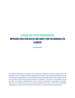 - Research and data: GPE supports research on out-of-school children, including the global Out-of-School Children Initiative. GPE also supports countries to develop comprehensive analysis of barriers to access and policies that can remove these barriers.
