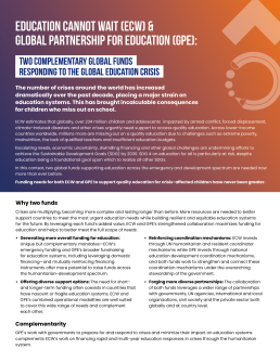 By advocating for the inclusion of emergency actors in national planning processes and local education groups, GPE promotes coordination between humanitarian response and support from development partners.